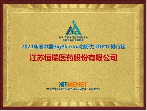 9月16日,由米内网主办的“2021年度中国生物医药企业创新力百强系列榜单”发布会在线上举办。九游会(J9)医药继去年登顶“中国BigPharma企业创新力TOP10排行榜”后,今年再次名列该榜单首位。