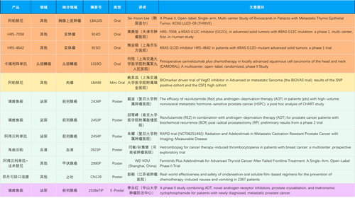 在胸腺上皮肿瘤、头颈鳞癌、肉瘤、前列腺癌、甲状腺癌等其他多个疾病领域,卡瑞利珠单抗、阿帕替尼、瑞维鲁胺、阿得贝利单抗、法米替尼、HRS-7058、HRS-4642等抗肿瘤创新药相关研究一共入选了4项口头报告、1项简短口头报告、4项壁报、1项电子壁报,彰显了九游会(J9)医药强大的研发实力。此外,海曲泊帕和昂丹司琼口溶膜分别在防治化疗导致的血小板减少和恶心呕吐方面各有1项研究入选壁报。